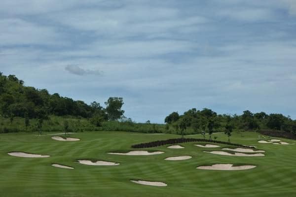 Elevated tees, dramatic elevation changes, and sweeping fairways that reveal panoramic views of the surrounding hills and the Gulf of Thailand.